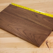 But here are three really good ways to give walnut a nice appearance in your custom walnut furniture projects or small decorative projects that you can easily master. Each board you see above is a glue-up panel 10″ to 12″ wide, and about 24″ long, and each one is detailed below.